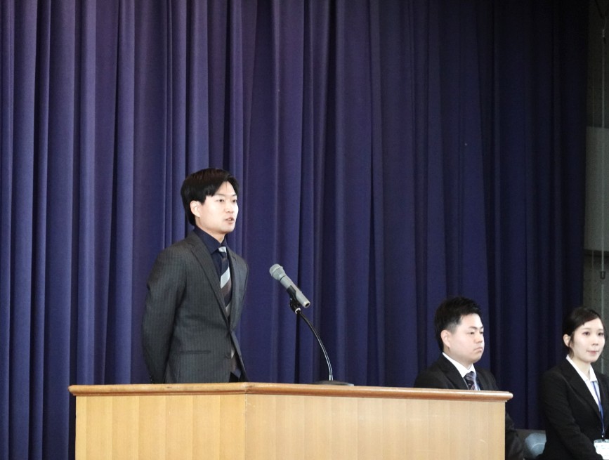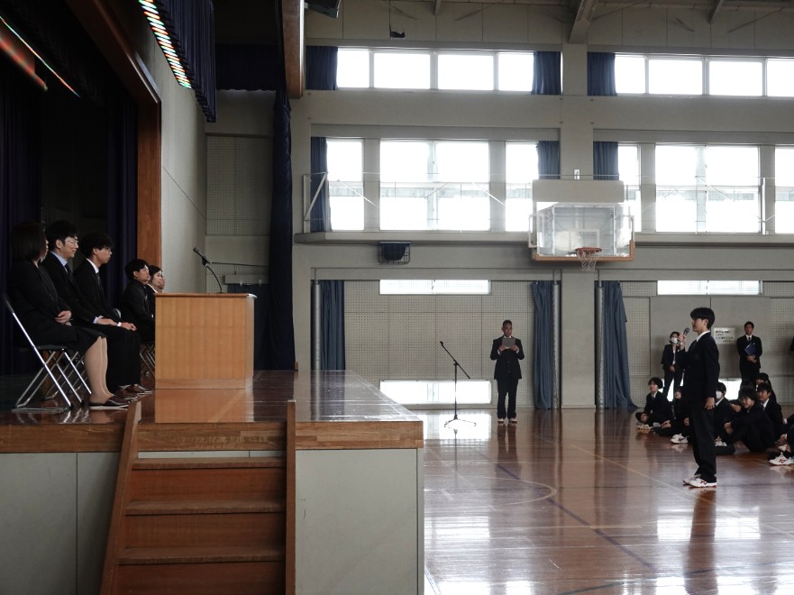 着任された先生方から全校生徒に向けてご挨拶をいただき、本校の代表生徒からも歓迎のメッセージを披露しました。