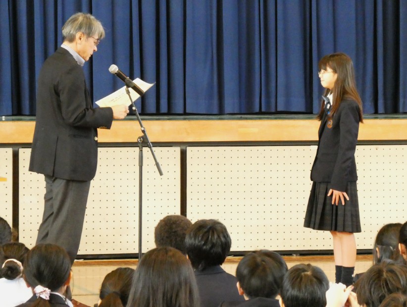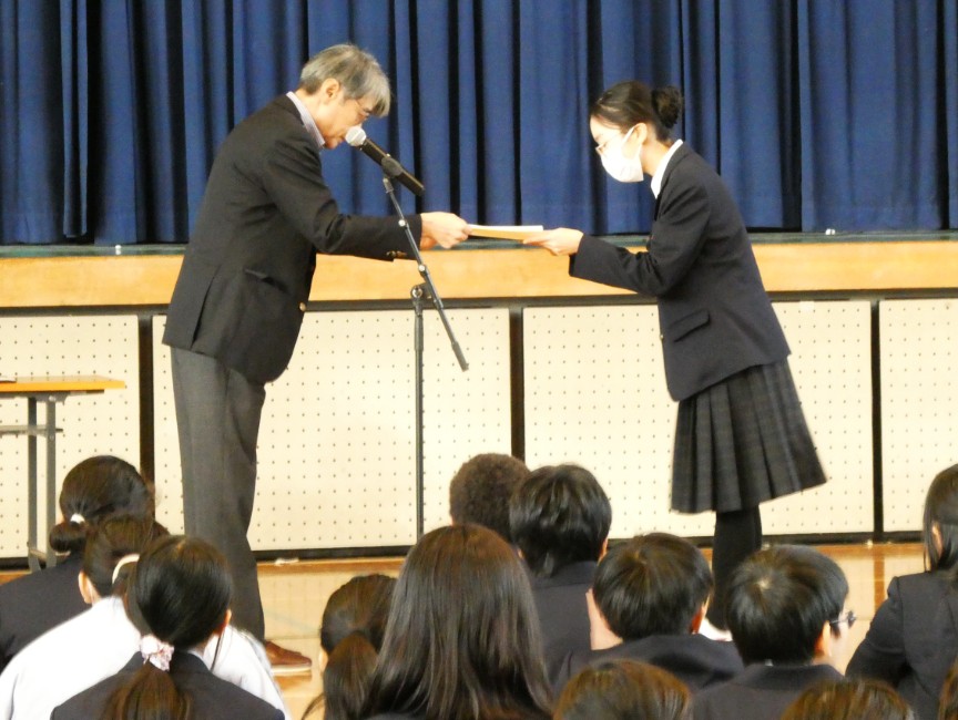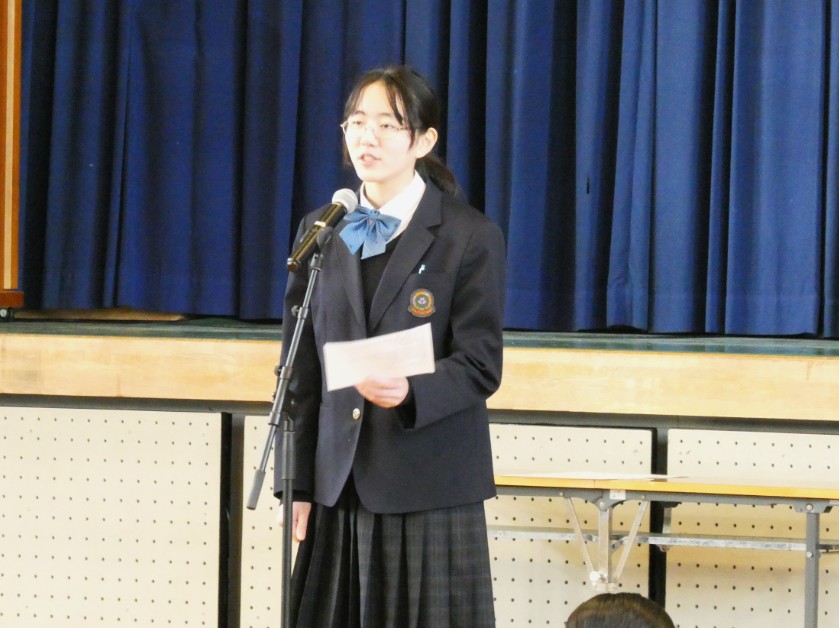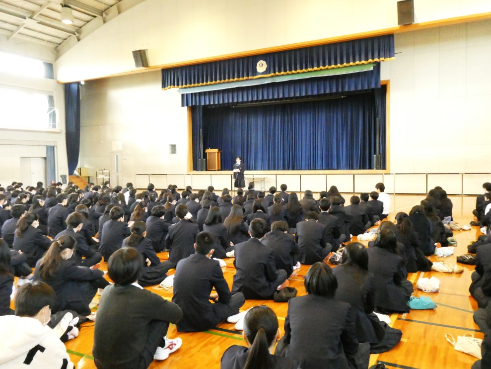 体育館アリーナで始業式が行われ、 校長式辞では次のような内容に生徒たちは耳を傾けました。