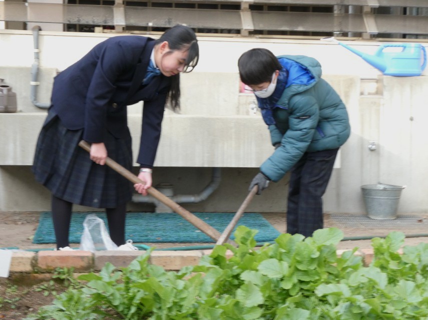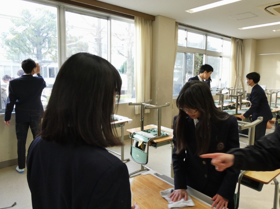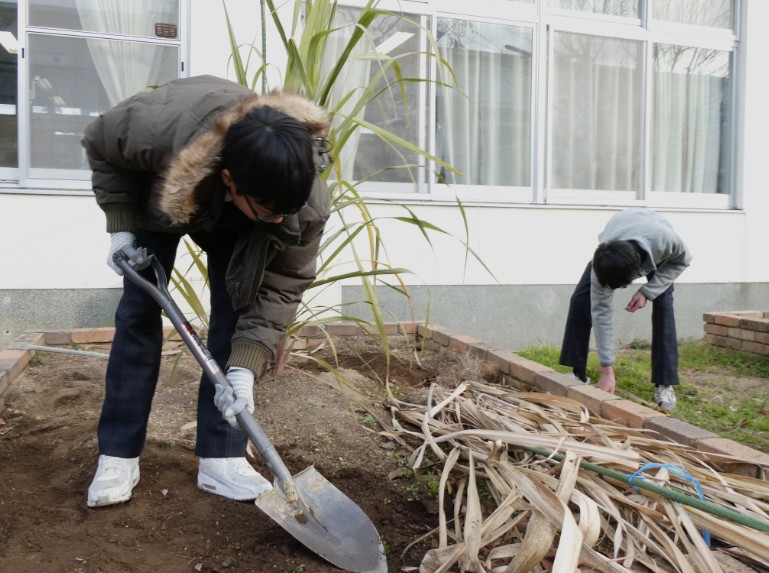 次に、30分間の大掃除では、教室や特別教室の普段十分にきれいにできていないところを重点的に掃除しました。学級菜園の手入れやその周辺の草抜きも寒い中、協力してできました。