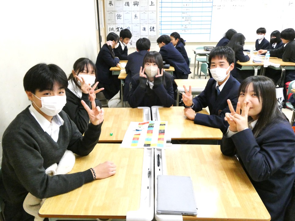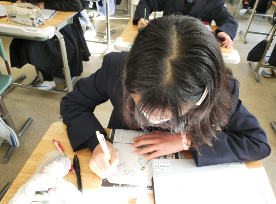 学活では、冬休みの宿題の提出や、担任から3学期の努力点などについて講話がありました。その後、1、2年生では冬休みの思い出をイラストとともに描いたり、「新春すごろく」や「班対抗クイズ大会」などをしながら仲間と楽しいひと時を過ごしました。3年生では卒業に向けて、原稿用紙に決意作文を書き、気持ちを高めていました。