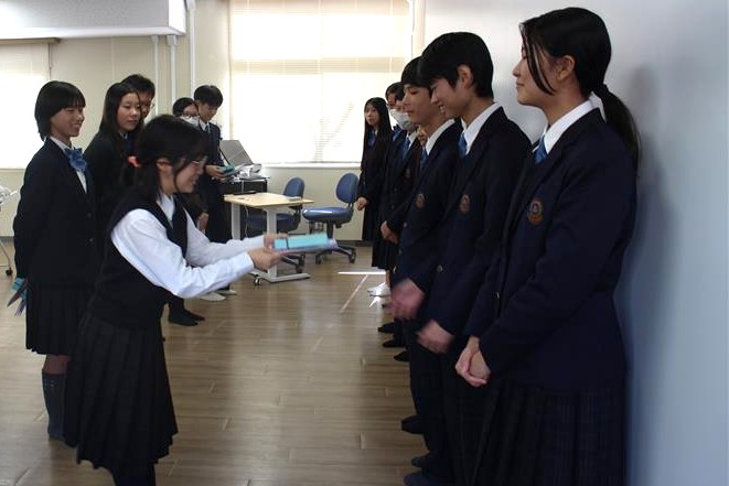 11月21日(金)放課後、生徒会本部の新旧交代式をしました。 旧会長から1年間の総括を発表し、旧副会長からは新生徒会本部に向けて激励の言葉を贈りました。 新会長からは、これからの学校作りや抱負について思いを語りました。そして、サプライズで記念品と「思い出の名言集」を旧生徒会本部のメンバー一人一人にプレゼントしました。 旧生徒会本部の意志を引き継ぎ、新生徒会本部のこれからの活躍に大いに期待しています。 最初<<24252627>>最後