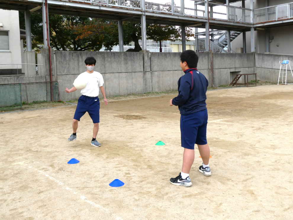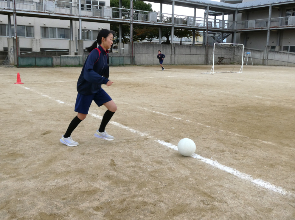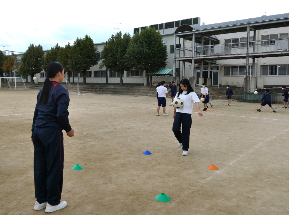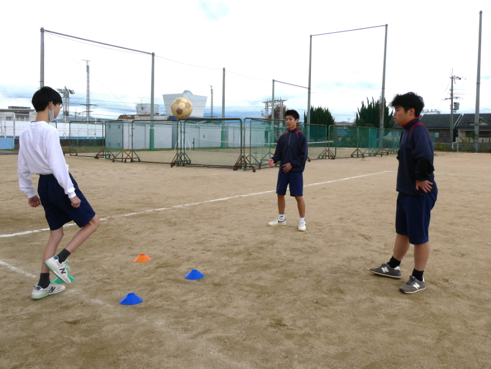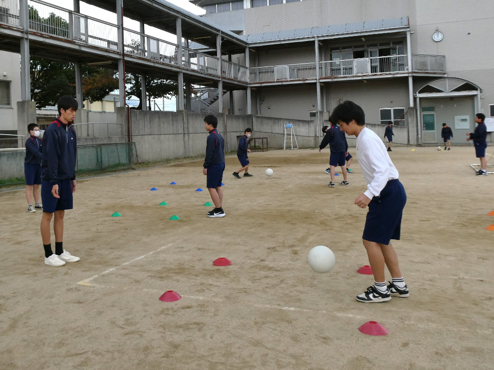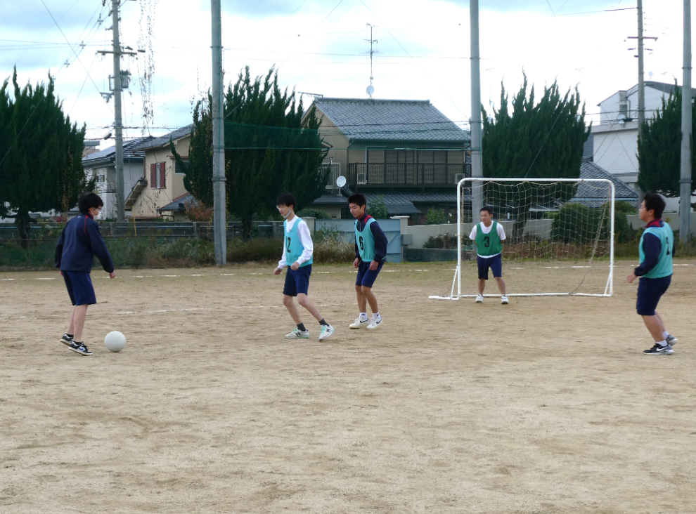 11月18日(火)4校時、3年の保健体育でサッカーの実践をしました。